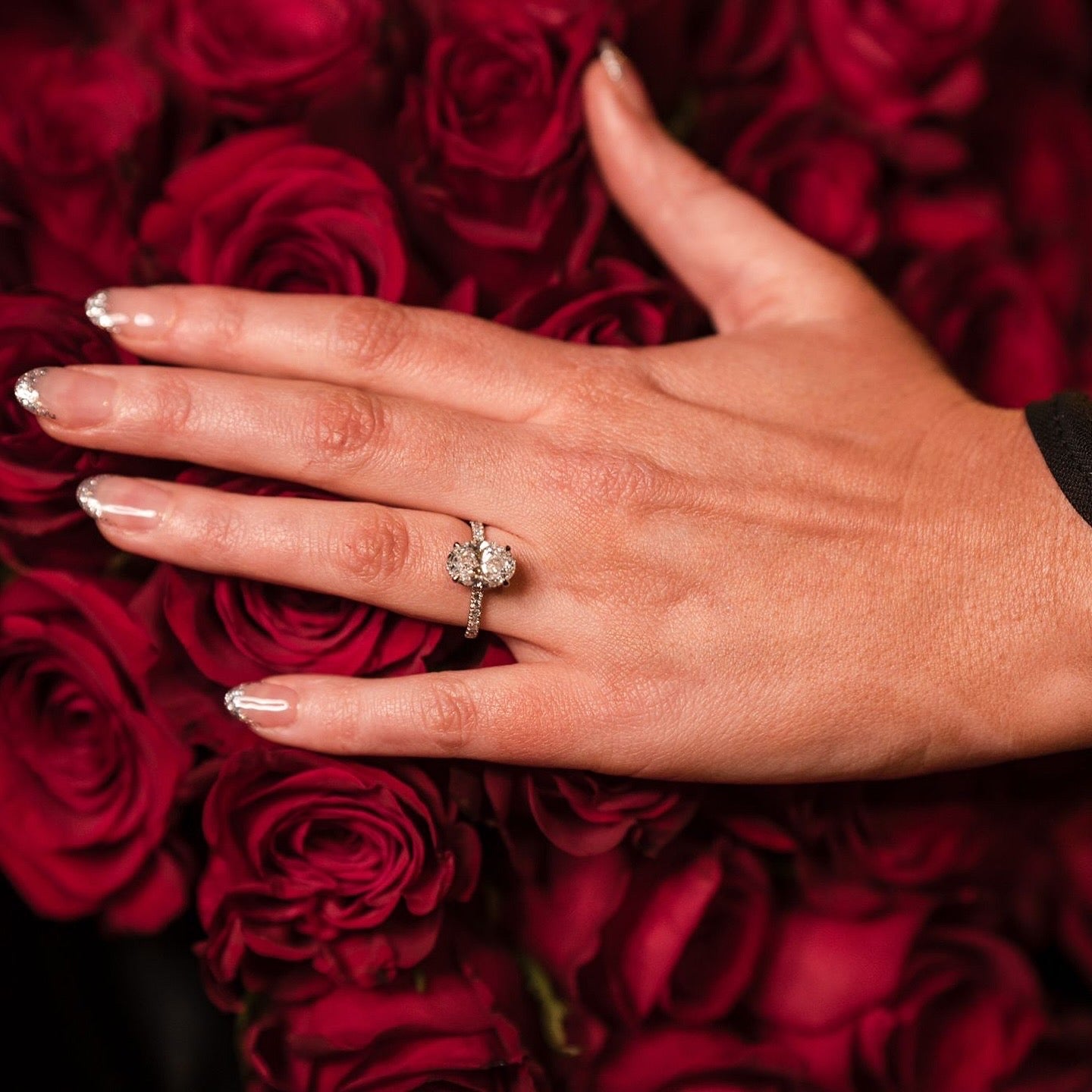 Presenting our gorgeous 1.00ct+ IGI Certified Centre Lab-Grown Oval Brilliant Cut Lab Diamond Engagement Ring set on a stunning Cathedral Setting with diamond shoulder, adorned with a hidden halo and diamonds on the bridge.