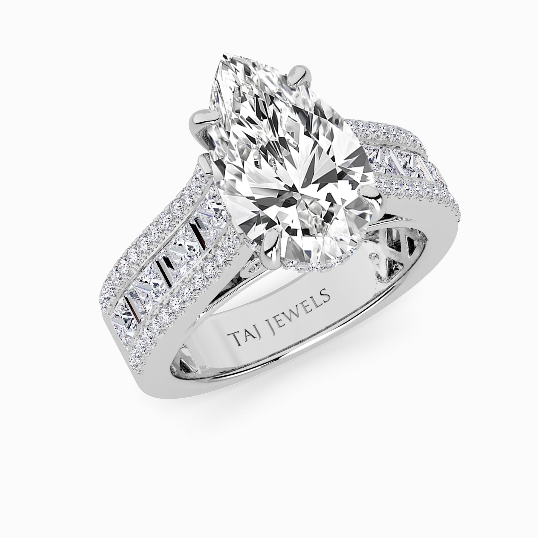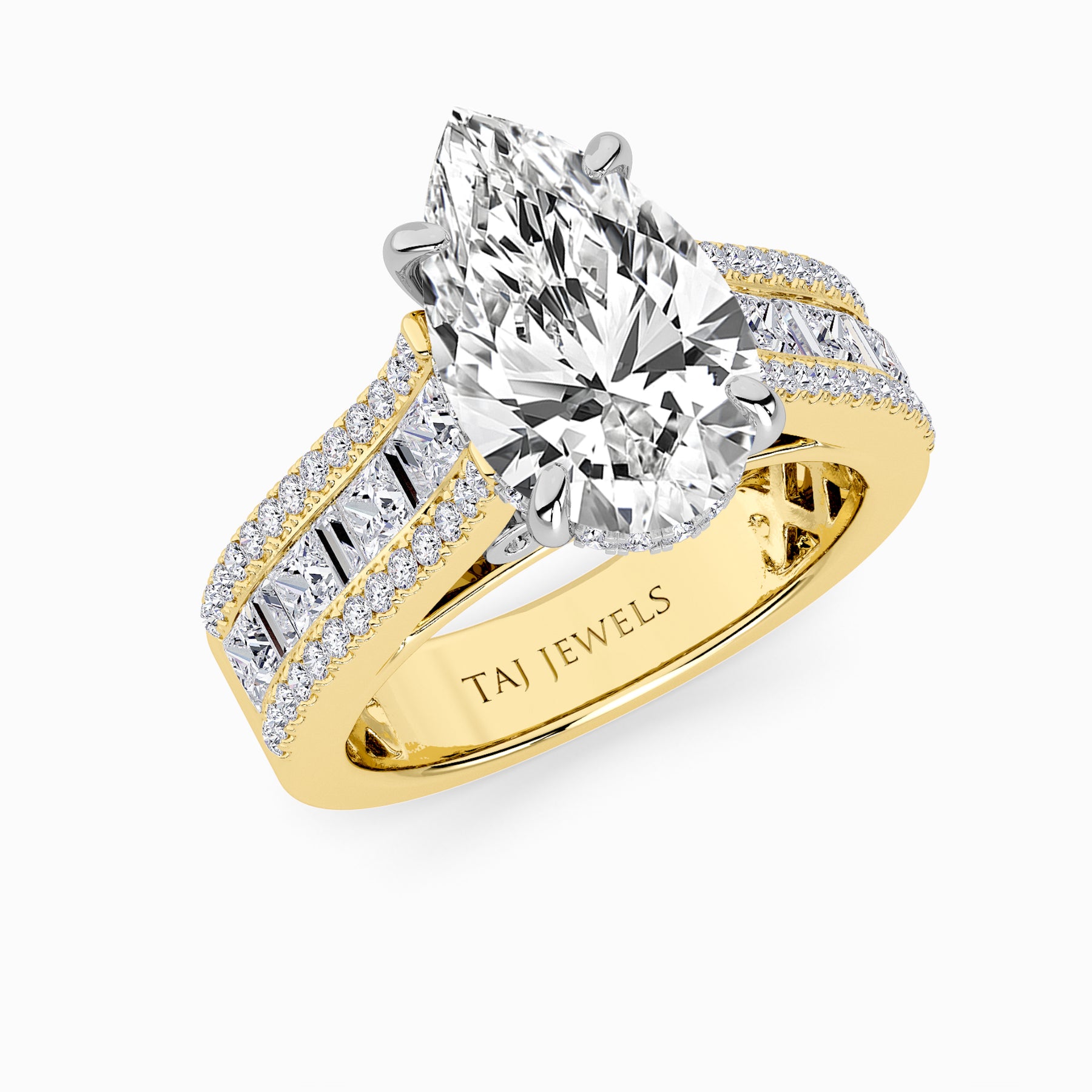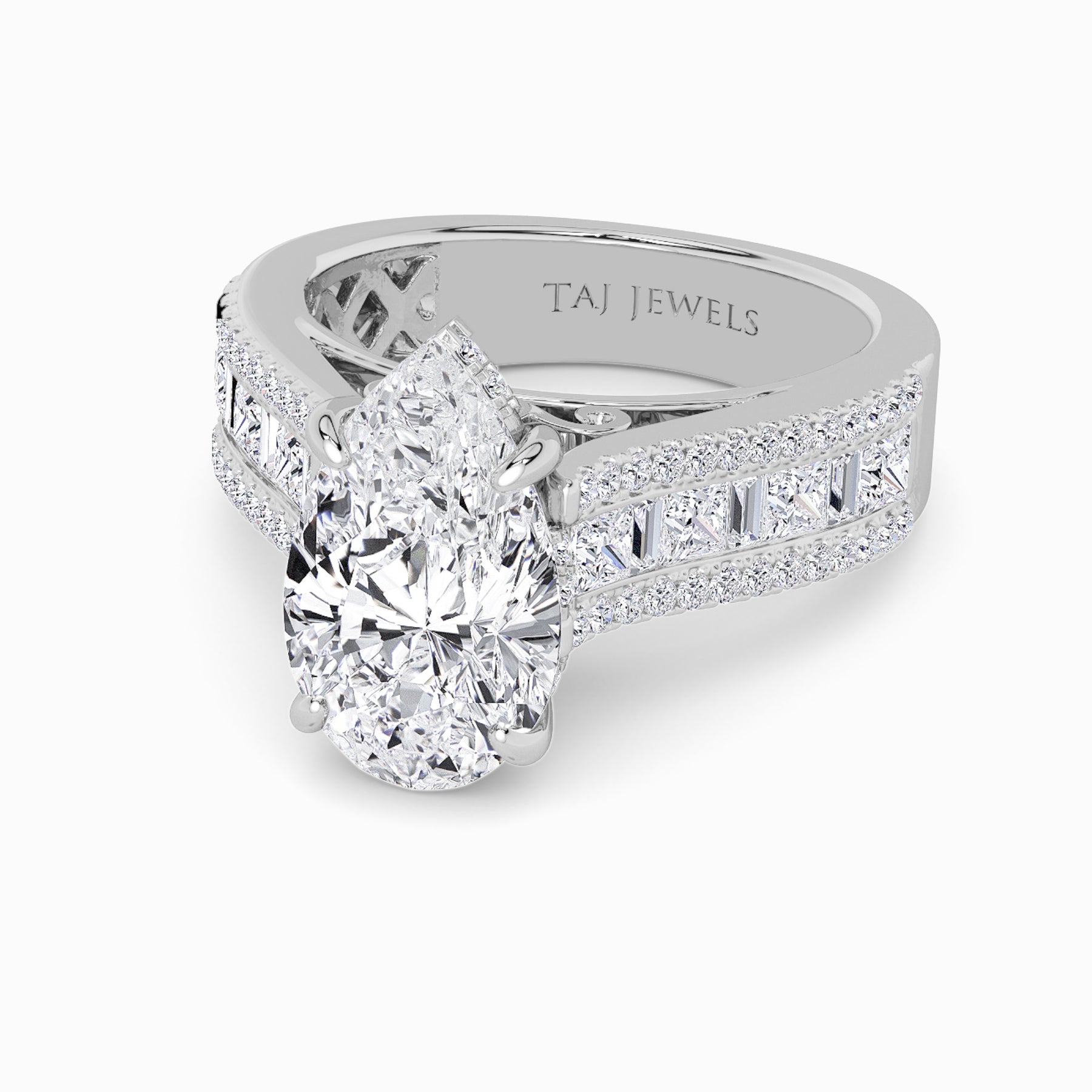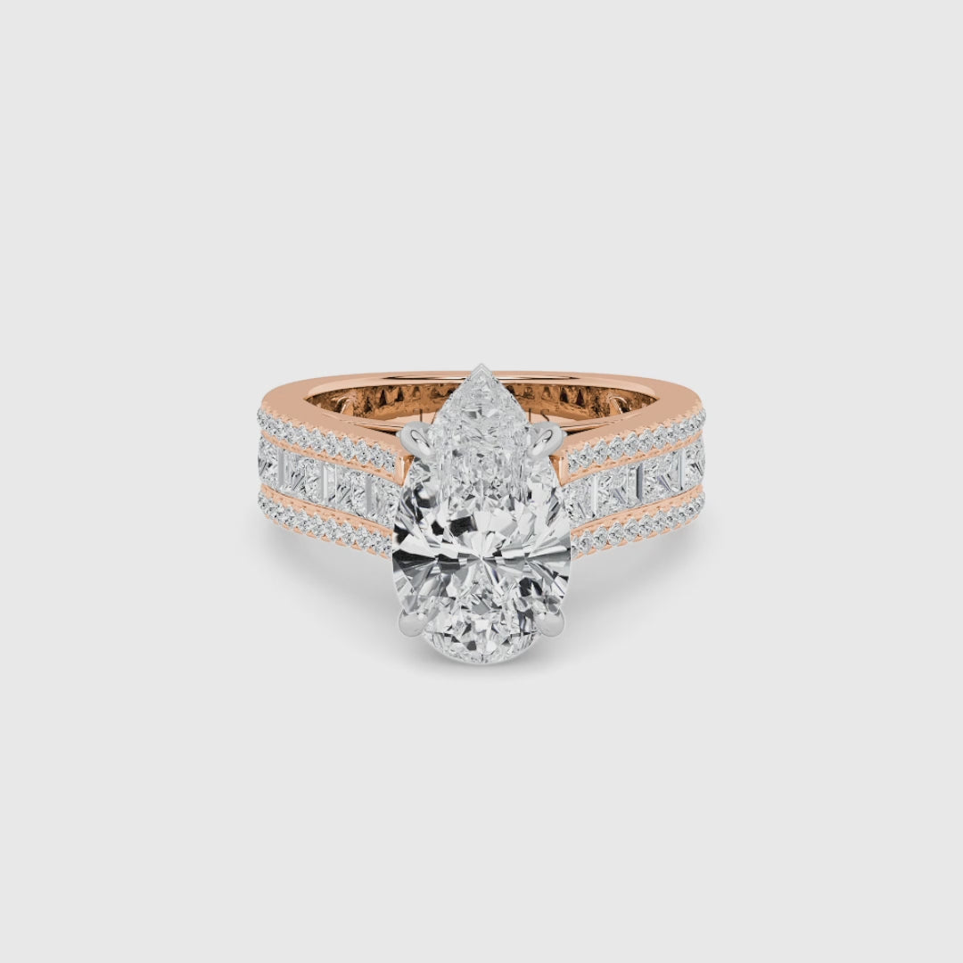 Presenting our exquisite Pear Brilliant Cut Lab Diamond Engagement Ring, featuring a hand-selected, IGI certified lab-grown diamond of at least 1.50ct, radiating unmatched clarity and sparkle.