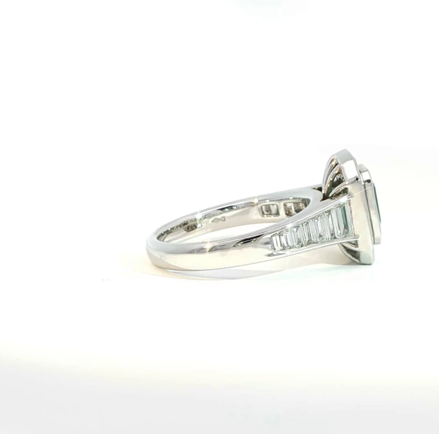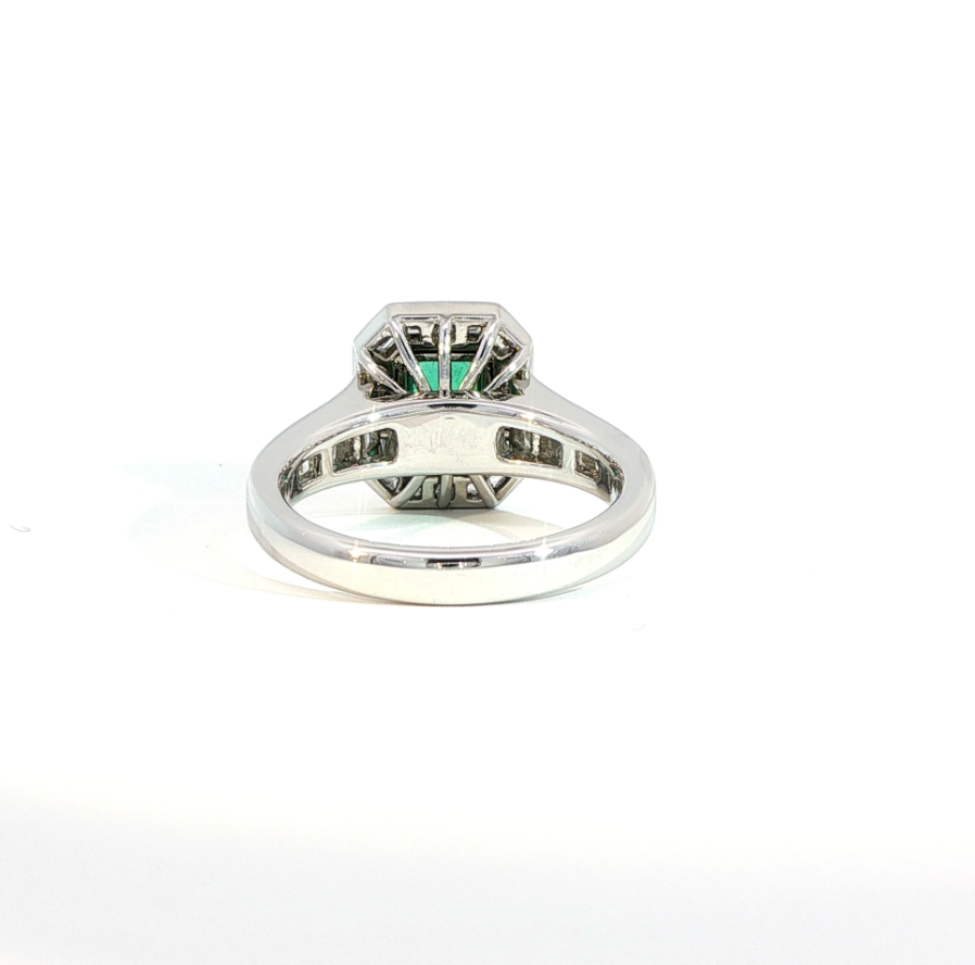 Redefine your engagement with this show stopping Emerald and baguette diamond ring. Expertly crafted in the metal of your choice and weighing a total of 2.08 carats, perfect for the woman looking for something just as individual and special as she is!