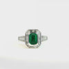 Emerald Cut Emerald and Diamond Bezel Set Art Deco Style Halo Engagement Ring