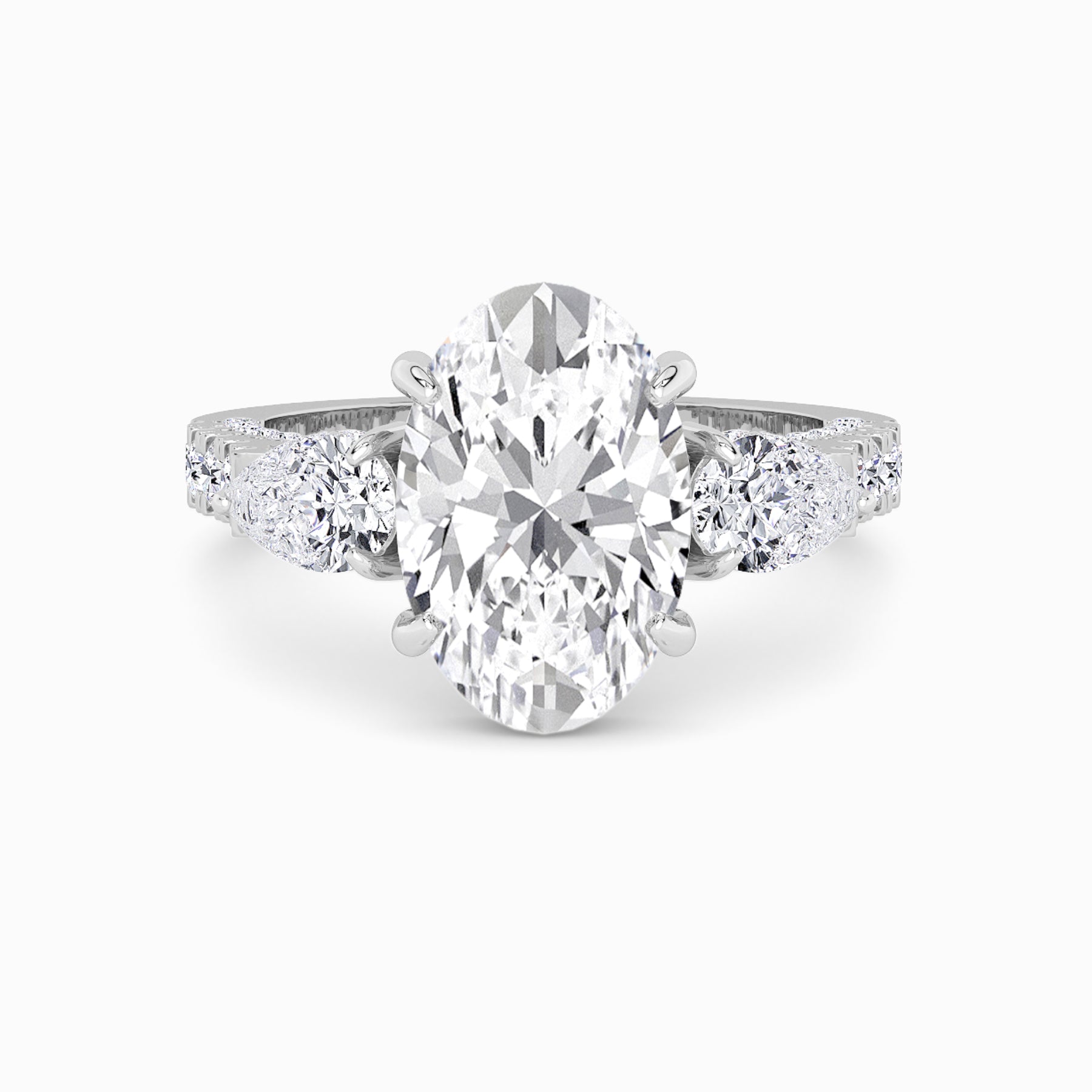 ✨ 1.50ct+ Oval Cut Lab Diamond Engagement Ring with Pear Side Stones, 3D Pave Band & Open Gallery