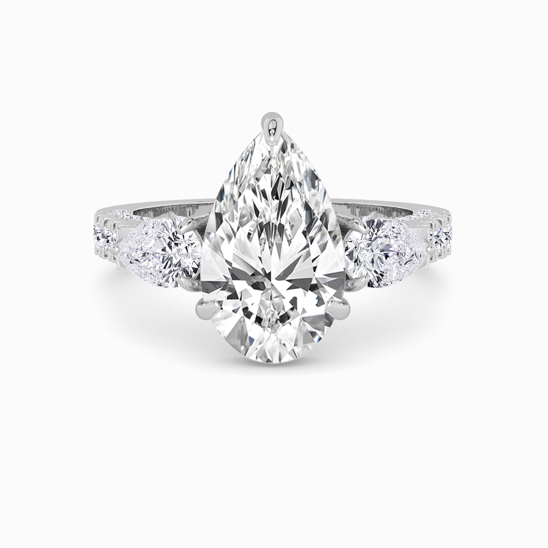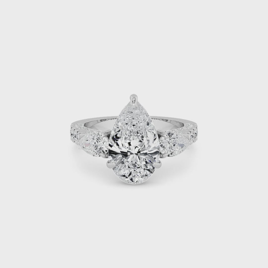 ✨ 1.50ct+ Pear Cut Lab Diamond Engagement Ring with Pear Side Stones, 3D Pave Band & Open Gallery