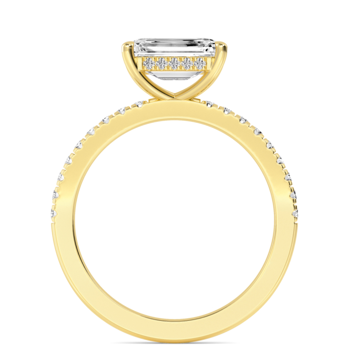 Emerald Cut East West Shoulder Set Lab Diamond Engagement Ring (Floating Head) (1ct+)