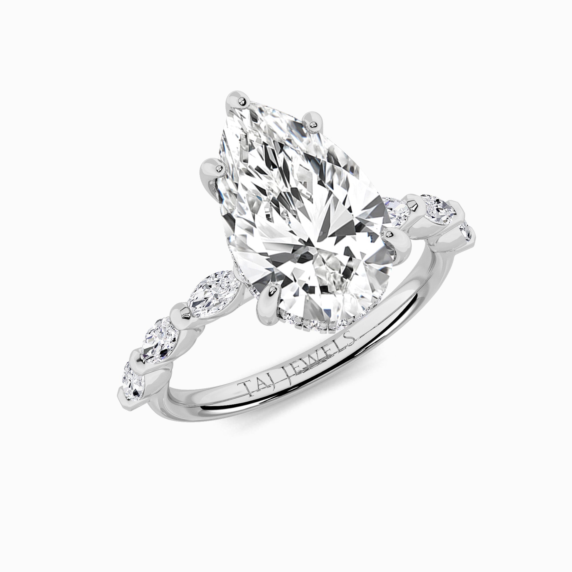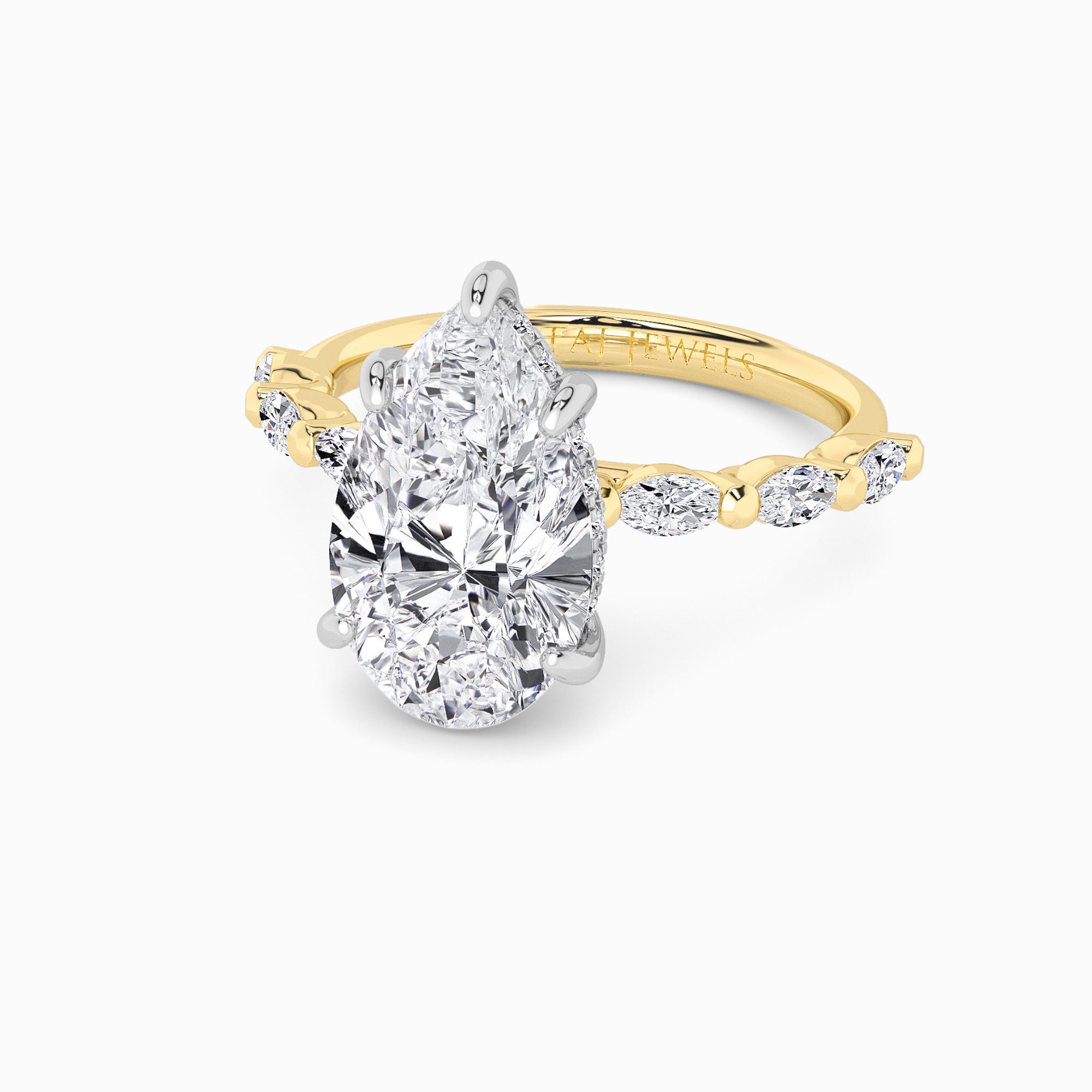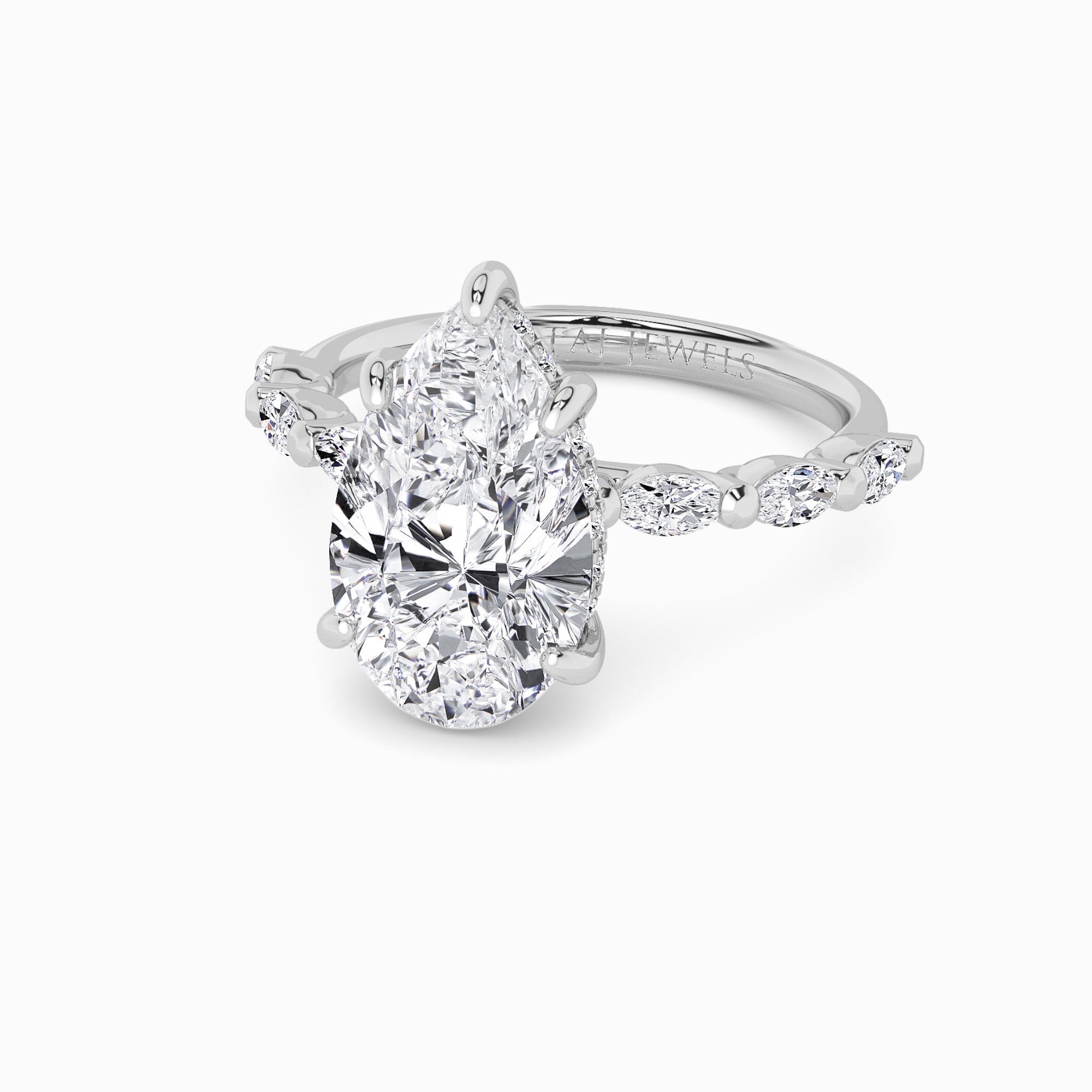 Pear Brilliant Cut Marquise Diamond Band Lab Diamond Engagement Ring (1.00ct+)