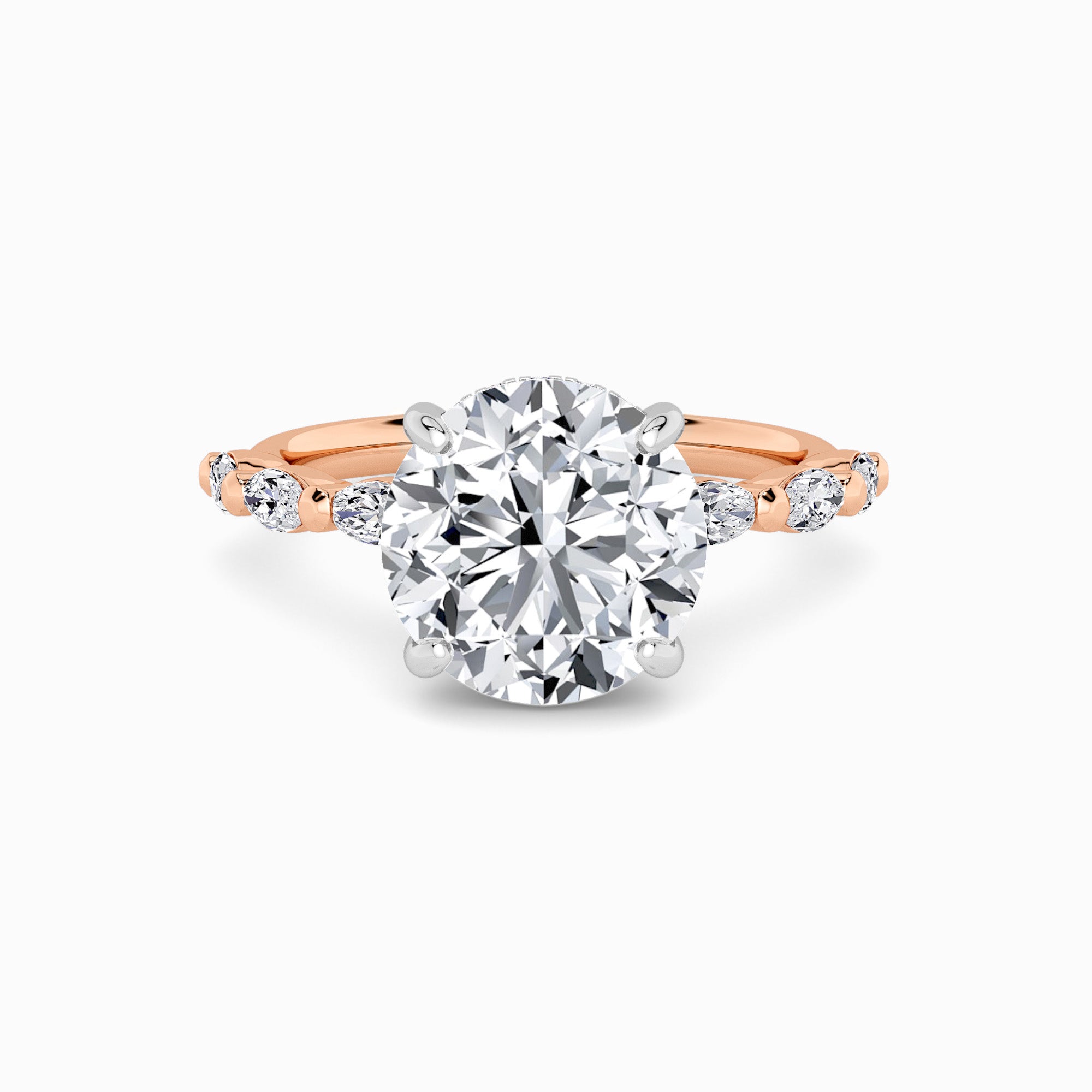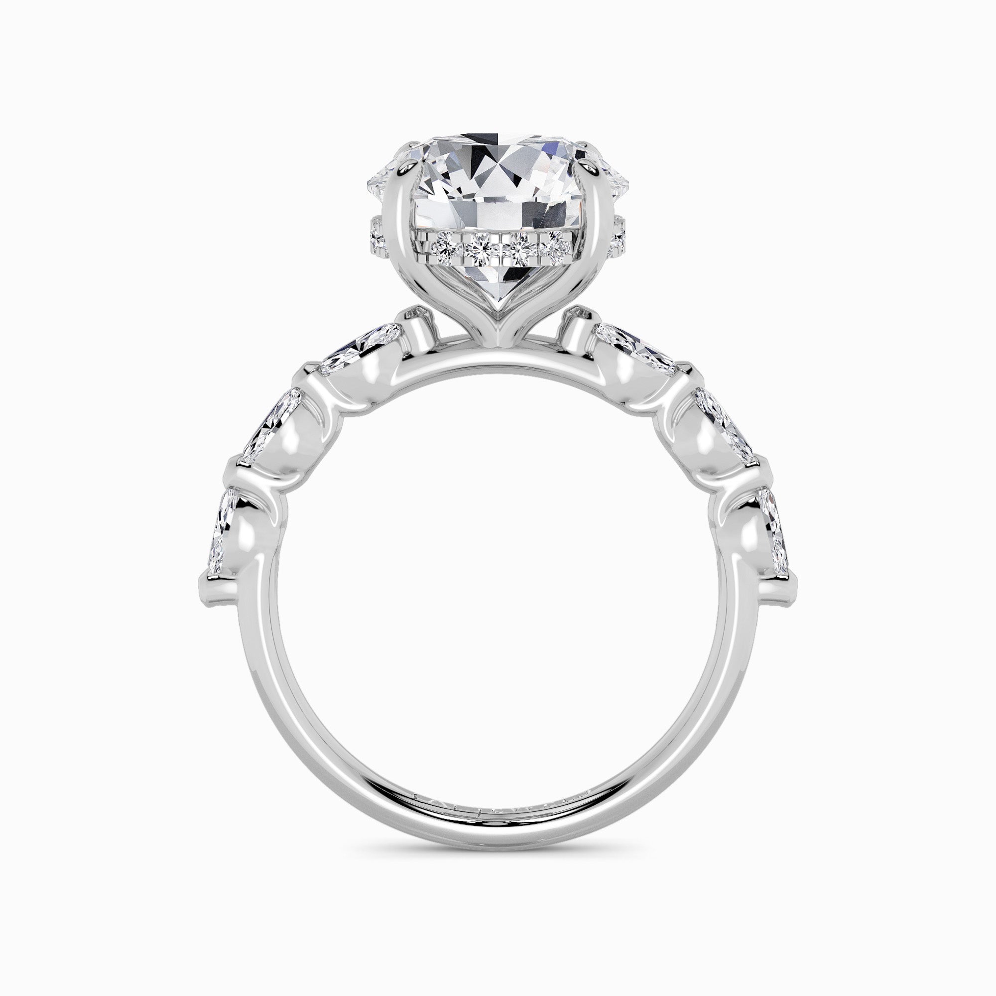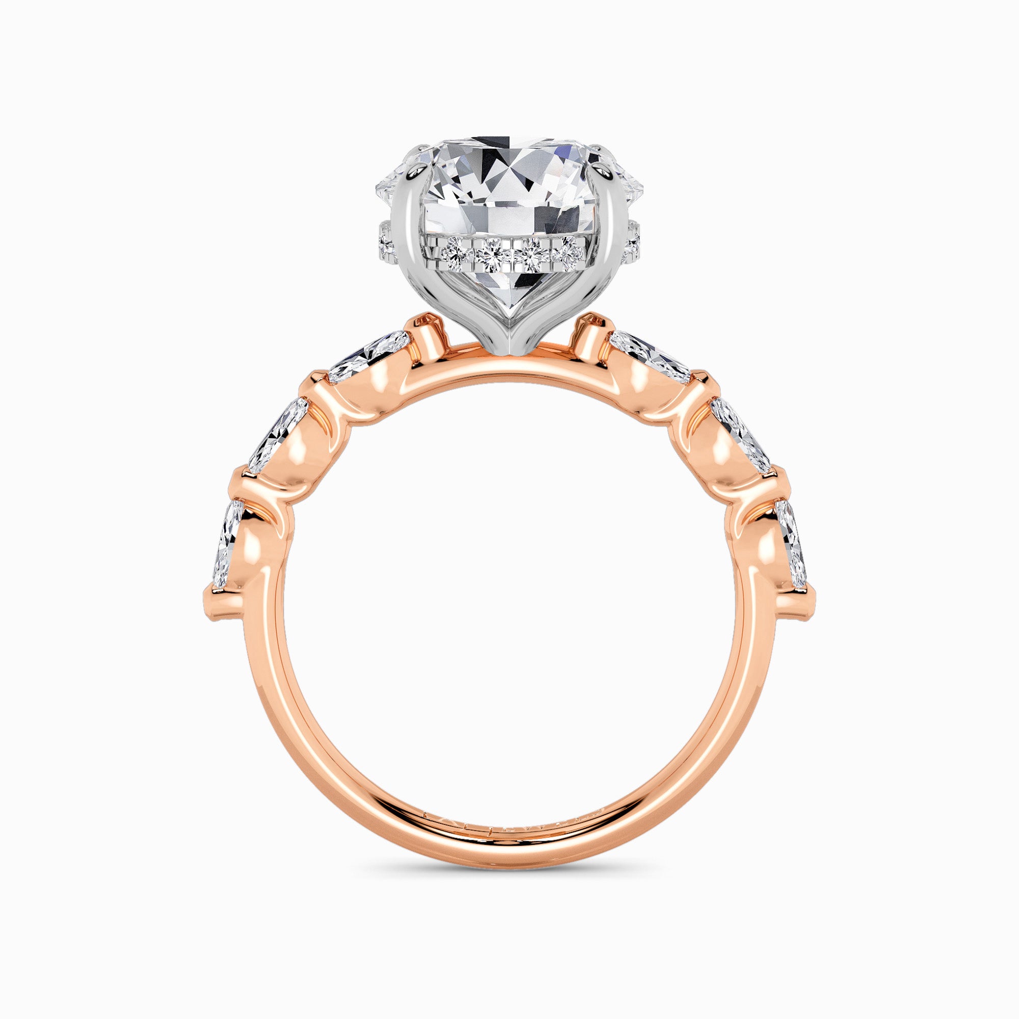 Round Brilliant Cut Marquise Diamond Band Lab Diamond Engagement Ring (1.00ct+)