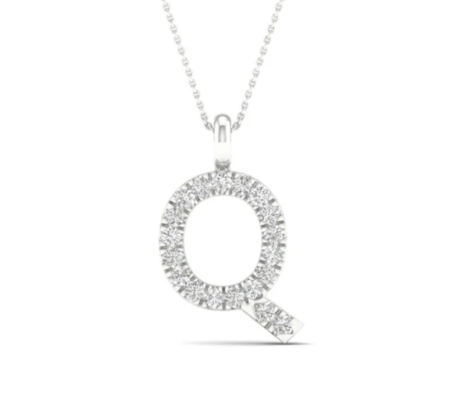 Show off the ultimate fashionista style with this stunning 0.10 ctw (approx.) “Q” Initial Pendant, crafted with lab-grown diamonds of VVS clarity and E-F colour.