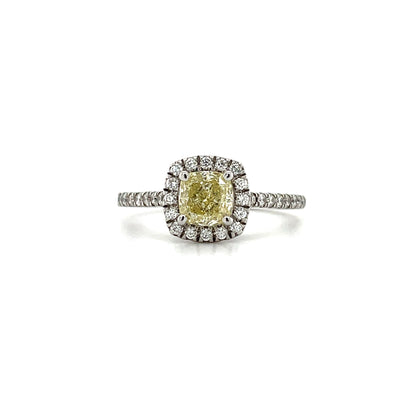 Natural Yellow Diamond Cushion Halo Engagement Ring - 1.26cts