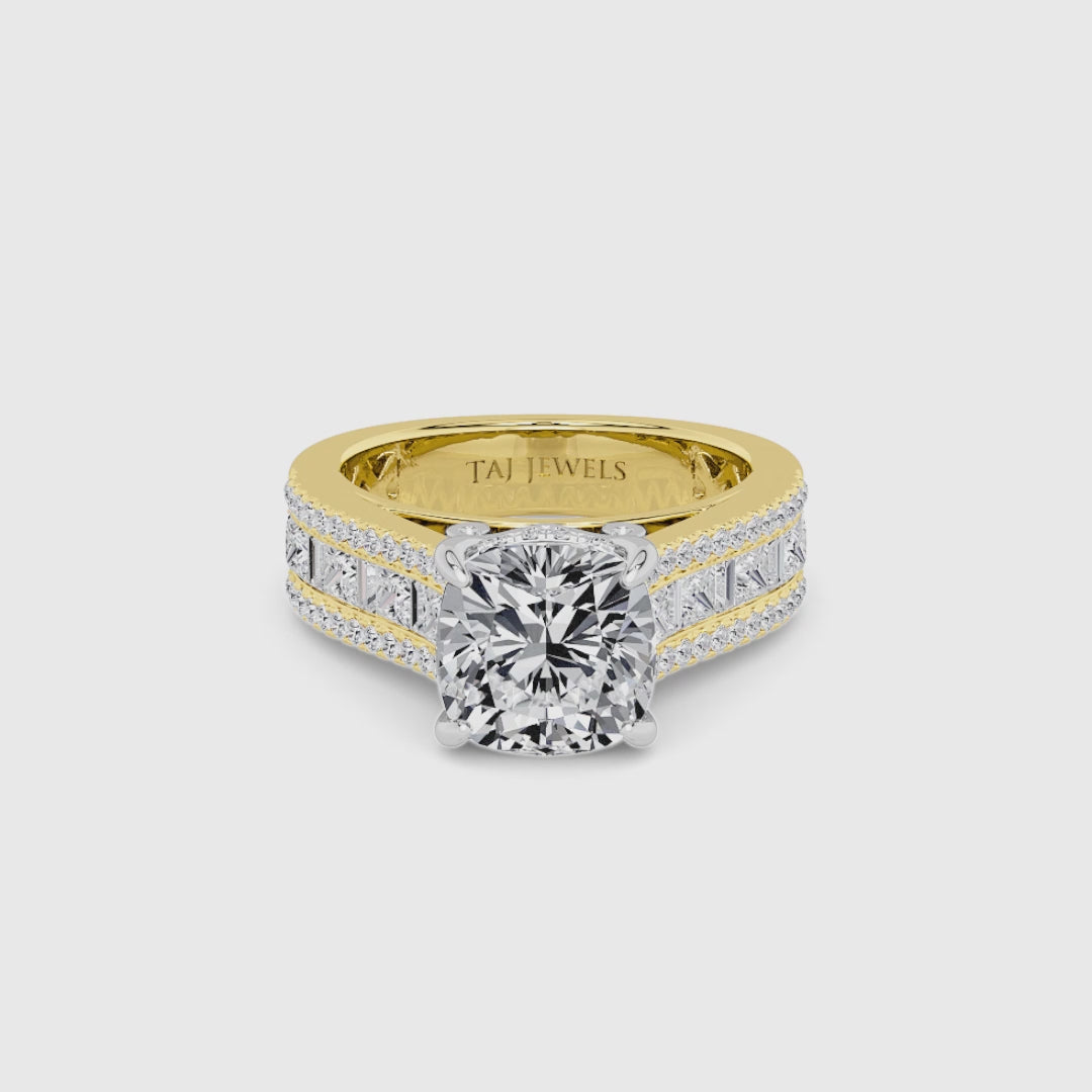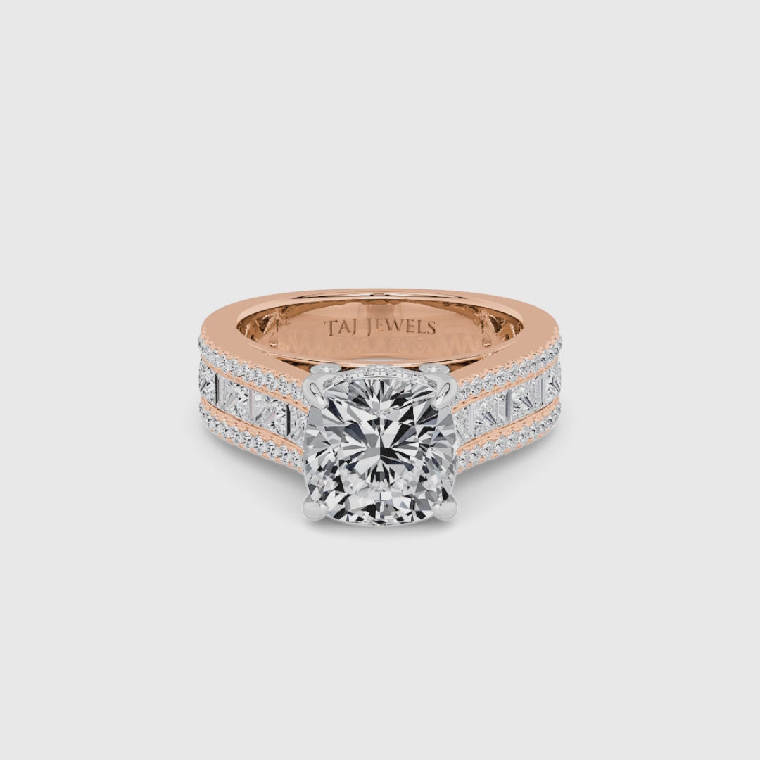 Presenting our exquisite Cushion Cut Lab Diamond Engagement Ring, featuring a hand-selected, IGI certified lab-grown diamond of at least 1.50ct, radiating unmatched clarity and sparkle.