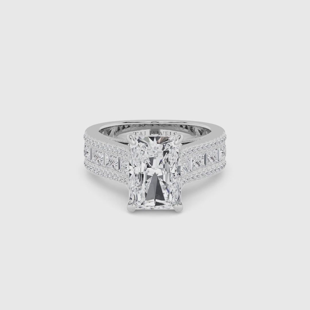 Presenting our exquisite Radiant Cut Lab Diamond Engagement Ring, featuring a hand-selected, IGI certified lab-grown diamond of at least 1.50ct, radiating unmatched clarity and sparkle.