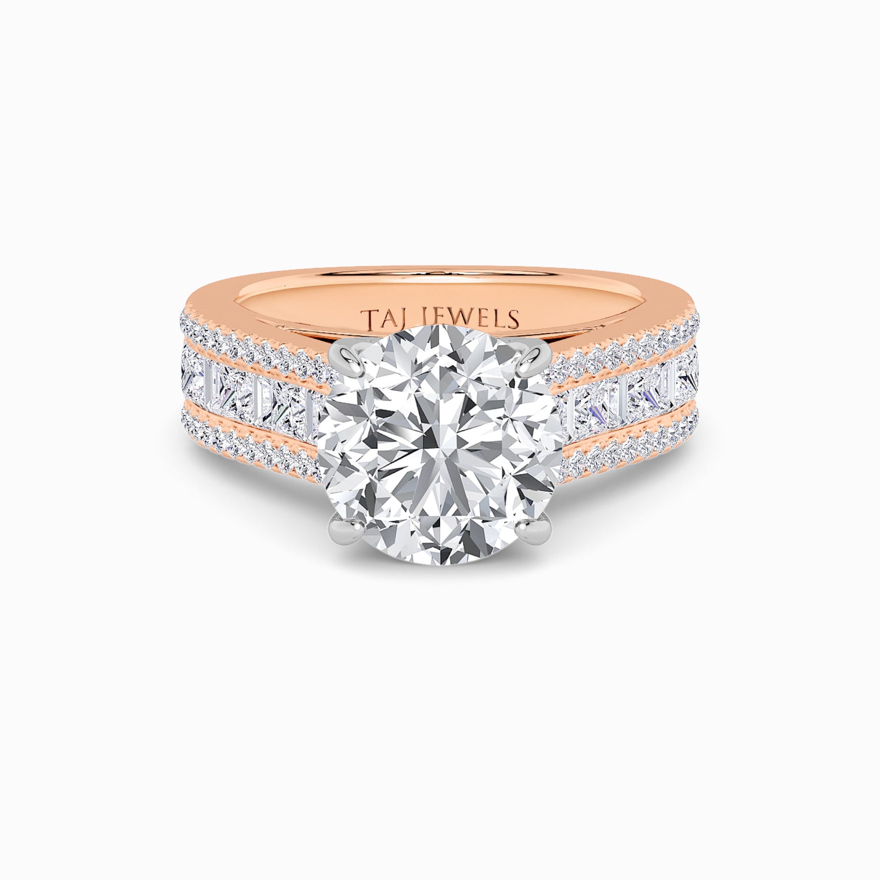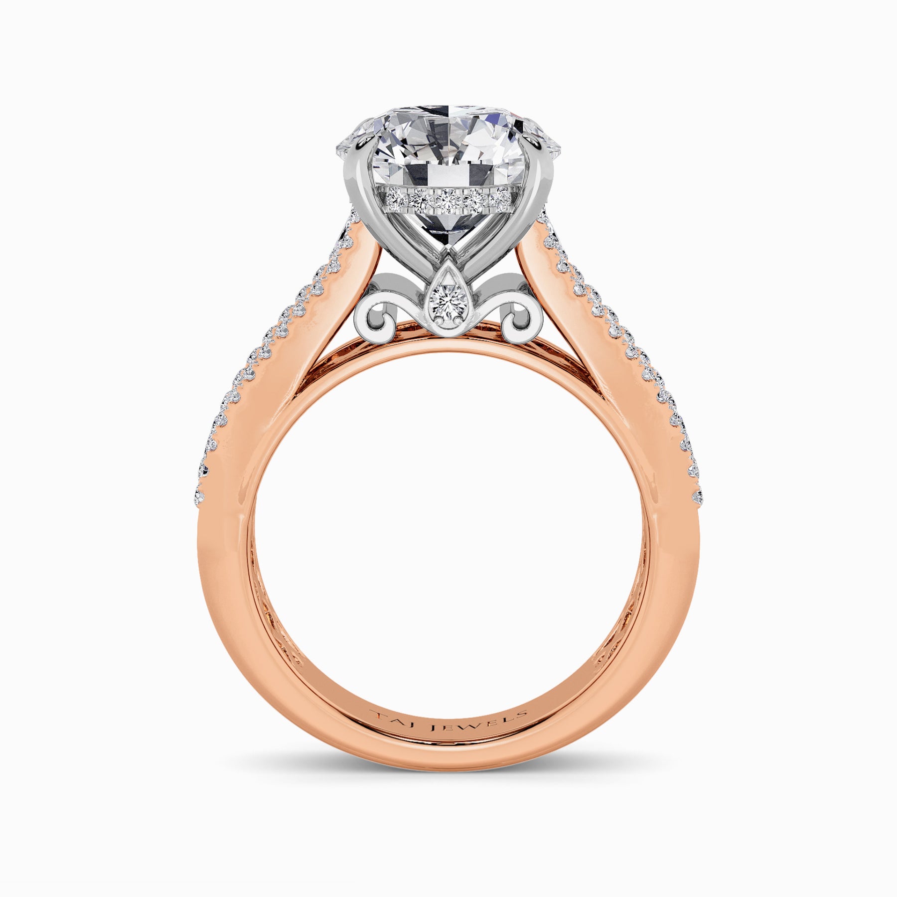 • Two-Tone: Platinum Head with 18K Rose Gold Band