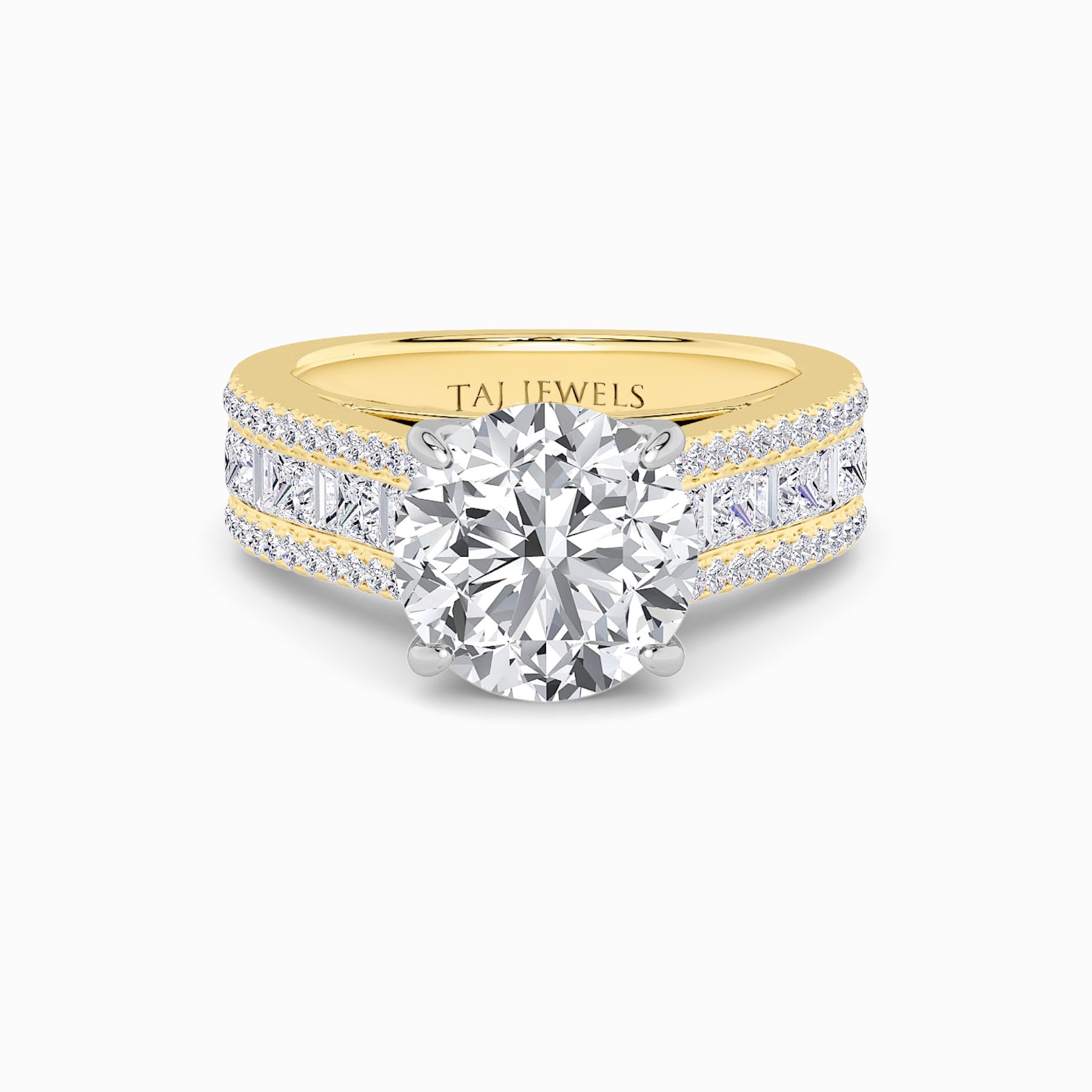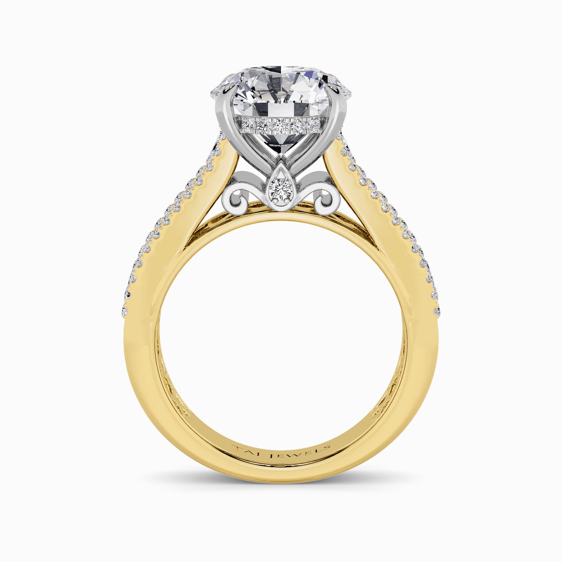 • Two-Tone: Platinum Head with 18K Yellow Gold Band