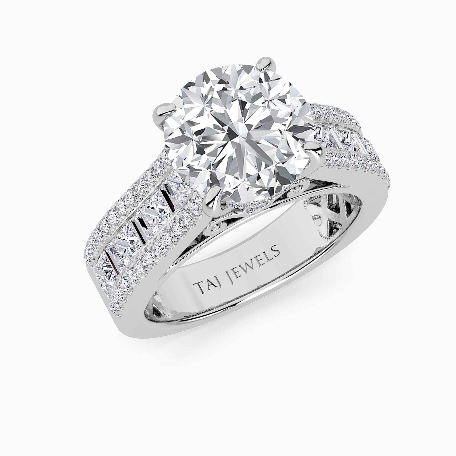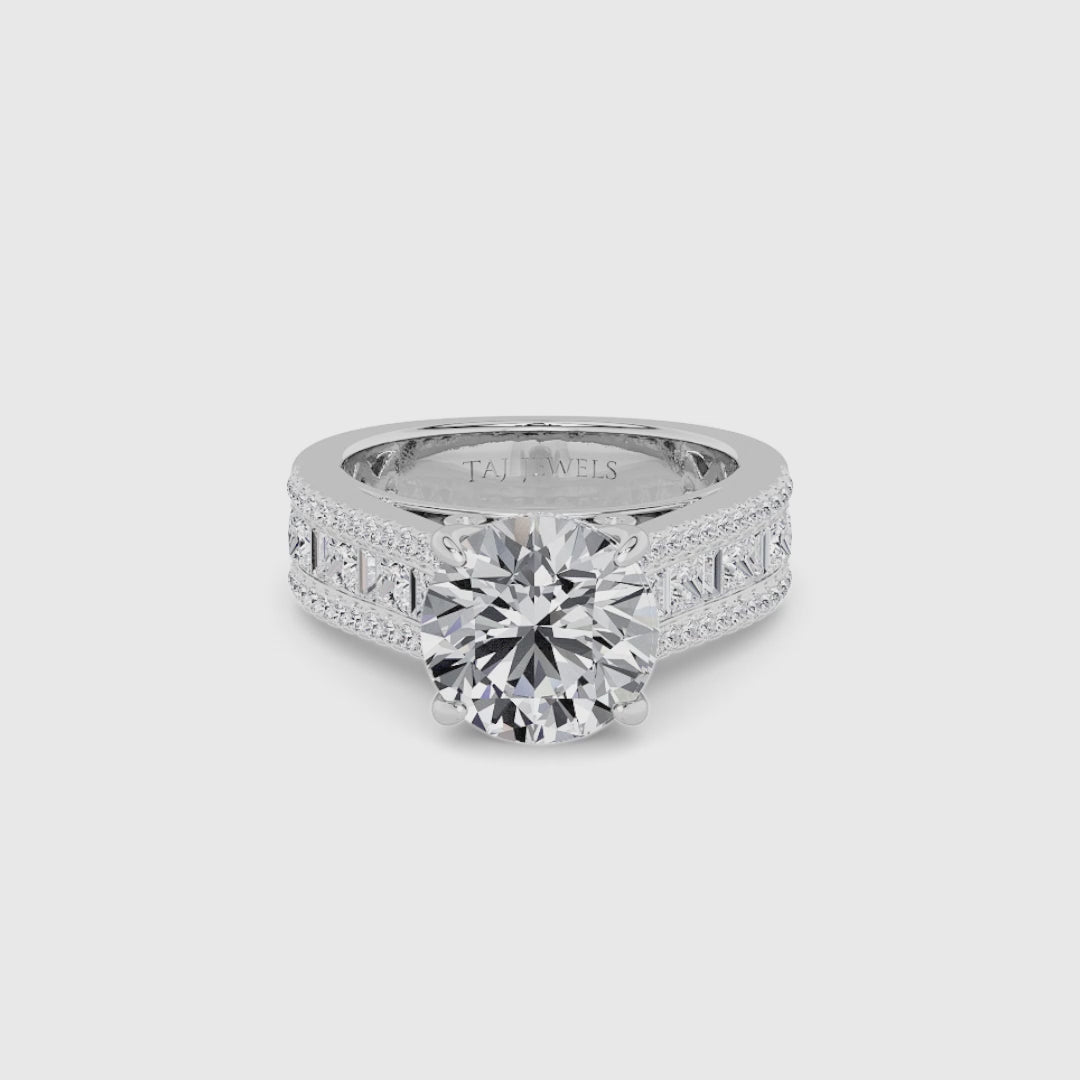 Round Brilliant Lab Diamond Engagement Ring with Princess, Baguette & Round Diamond Band (1.5CT+)